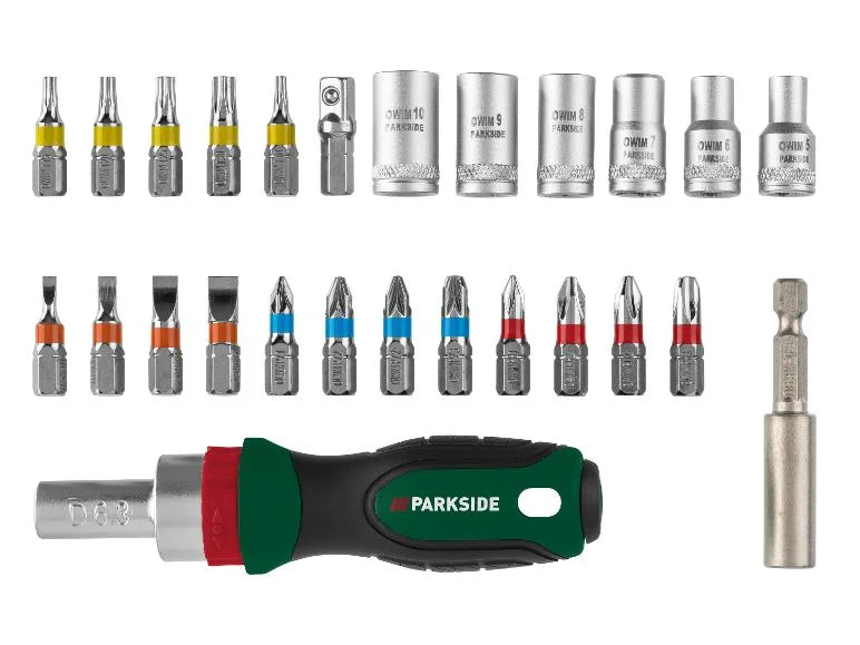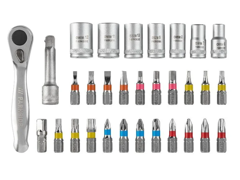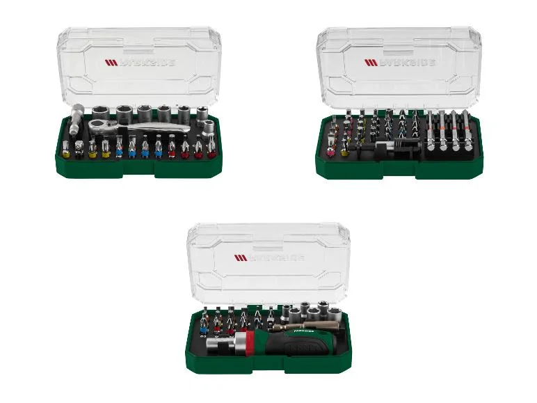 | Modèle | 3 mm, 31 pièces | embouts, 41 pièces | set d’embouts et de douilles 6, clé à cliquet, embouts et douilles |